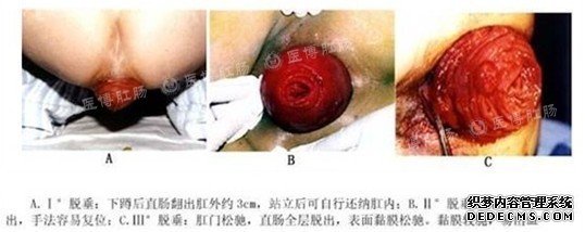 后期:脫肛在咳嗽、噴嚏、走路、久站或稍一用力即可脫出,脫出后局部有發(fā)脹感,脫出的黏膜有黏液分泌。